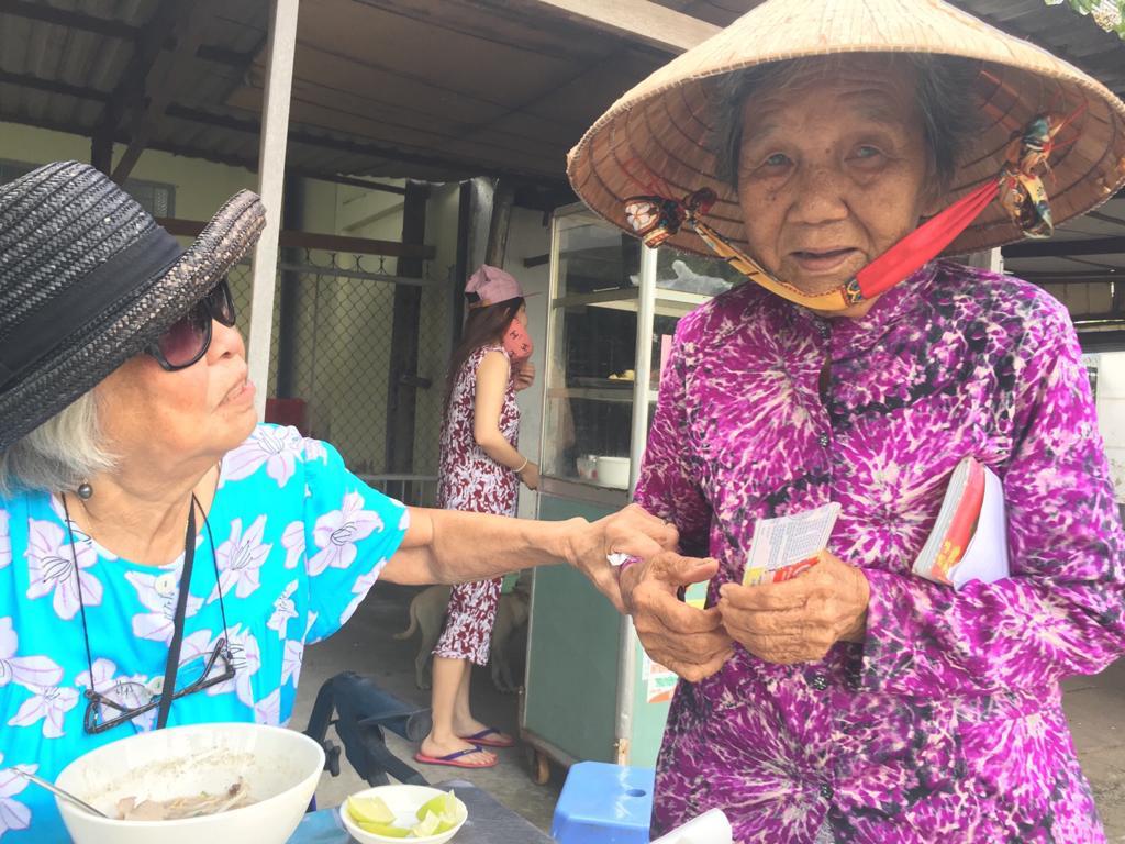 This lady, in her 80’s, took her son (in his 50’s) who had a debilitated stroke (by hired motorcycle driver) to this Buddhist temple for day care so she could go sell lottery tickets, She picked him up in the evening. Once home everyday, she would go collect plastic bags and wash them on the river bank to sell for some extra money for her and her son to live on.