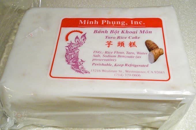 1 block of rice cake dough 2 tablespoons of dark soy sauce 1 tablespoon of vegetable oil 6 eggs 3 tablespoons of chopped salted daikon (see recipe) ~~~ 3 chopped green onions Pickled carrots (see recipe) Dipping soy sauce Sriracha
