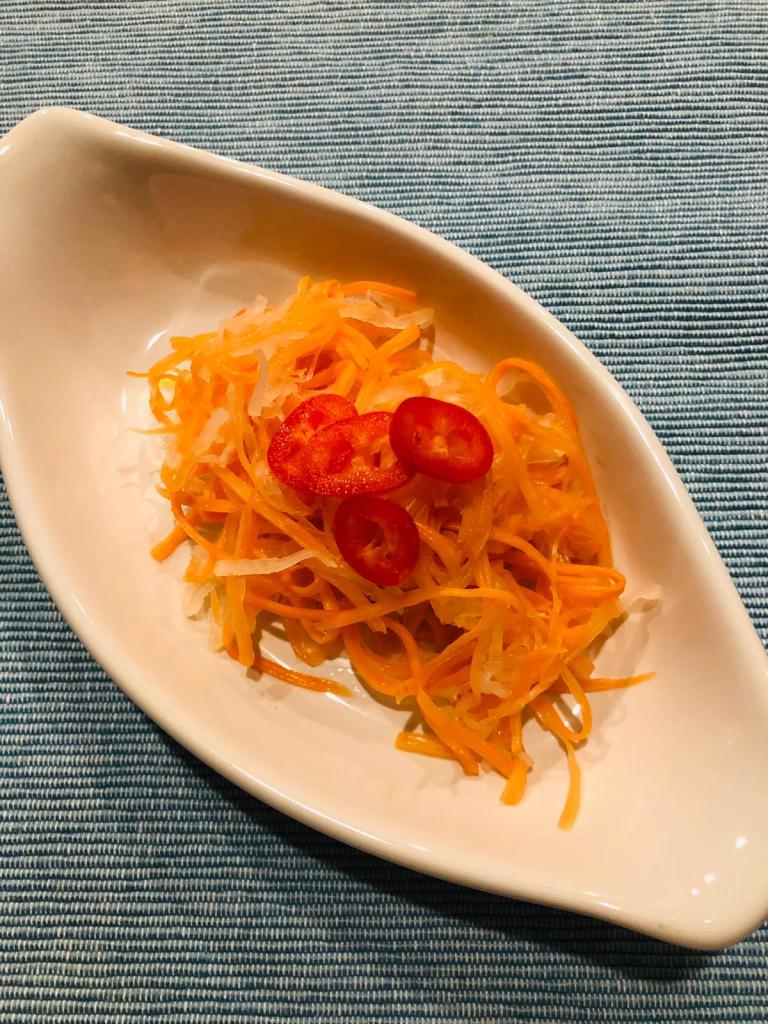 Two medium carrots Two medium daikon 1 tablespoon table salt