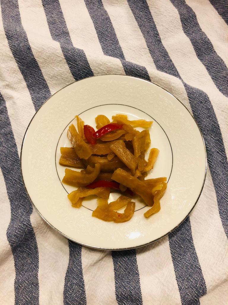 Cut up daikon into pieces 2”x1/2”x1/4” and soak with salt for about 2 hours. Rinse well and dry under Texas sun 2-4 hours.